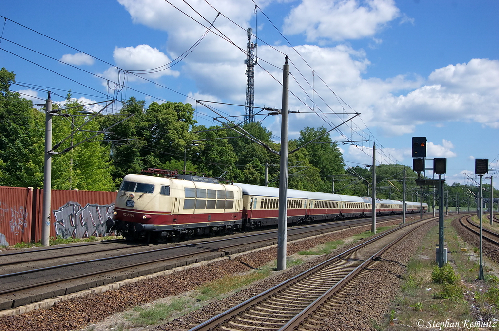 103 222-6 mit ihren Messzug von Stendal nach Rostock Seehafen in Berlin Staaken. 07.04.2011