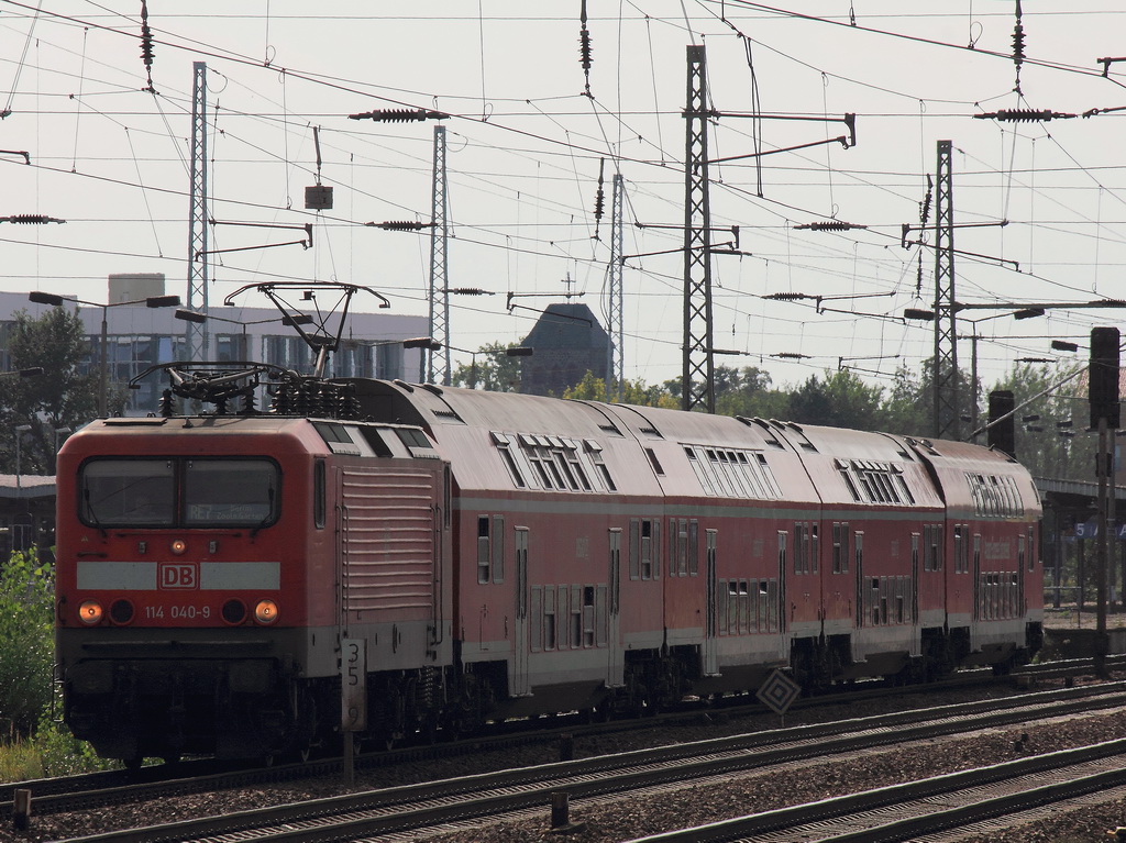114 036 mit dem RE 3 (RE 18313) nach Elsterwerder am 23. Mai 2012 zwischen Bahnhof Berlin-Lichterfelde Ost und dem Bahnhof Blankenfelde (Teltow-Fläming) bei km 24.0 auf dem südlichen Berliner Außenring bei Diedersdorf.
