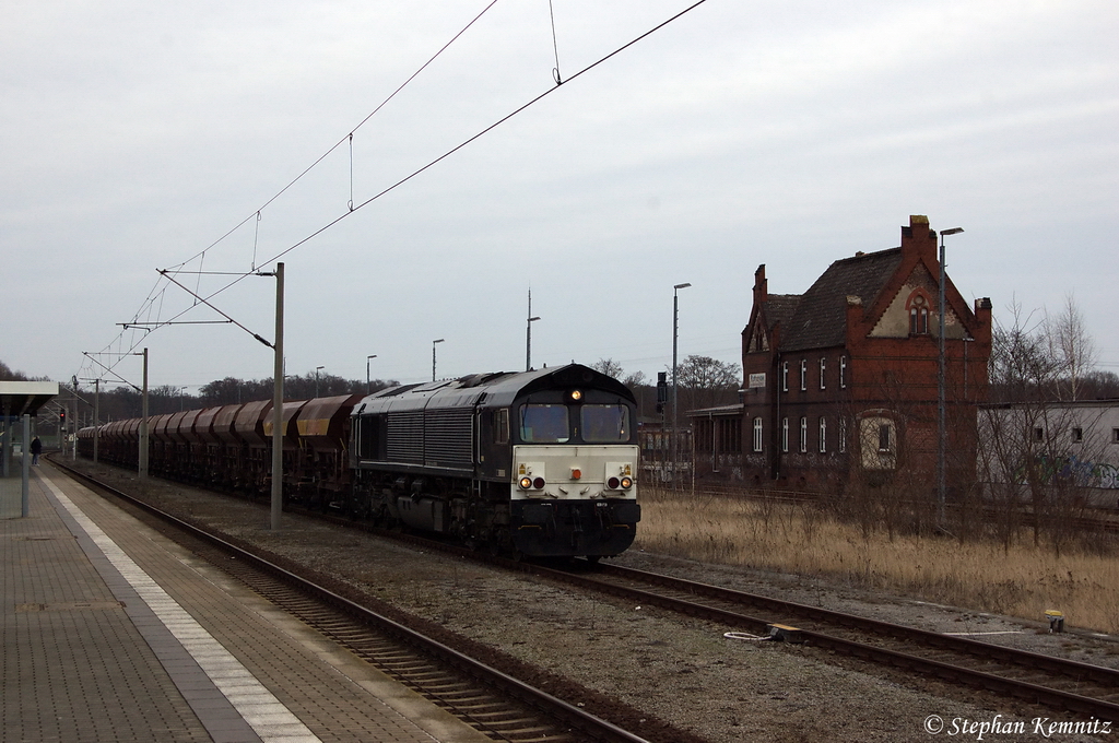 Noch wartete ich auf die RB, als 29005 von Beacon Rail mit einen VTG-Schüttgutzug Richtung Genshagener Heide am 08.04.2010 durch fuhr und der Tf ordentlich aufdrehte.