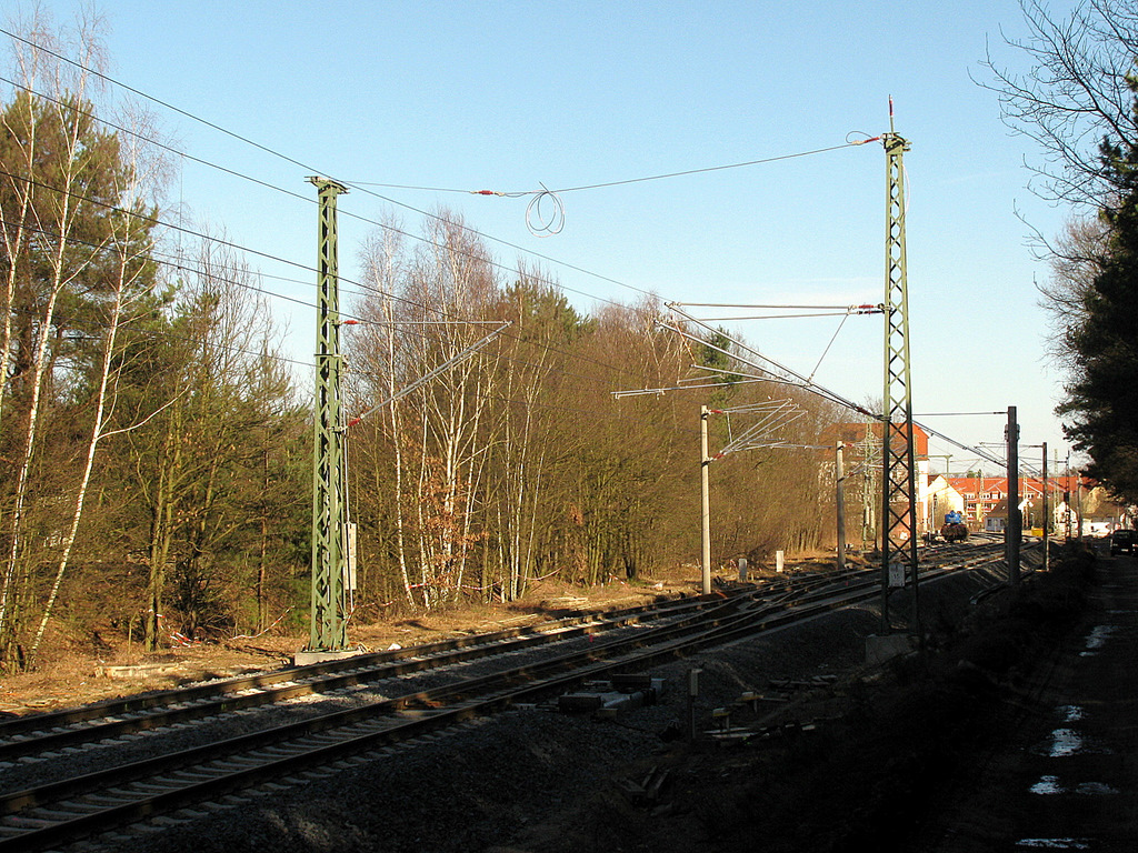 Hier nochmal ein sonniger Blick, auf die hier nahezufertiggestellte Berlin - Görlitzer Bahn. Gesehen am 12.02.2011