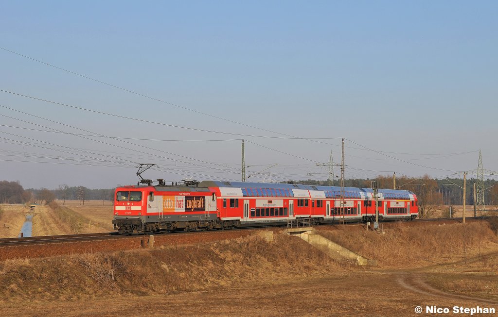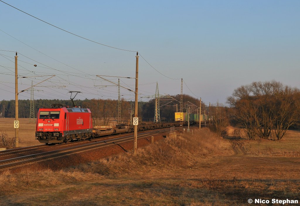 Die Schweiz-taugliche 185 141-9 war mit einer Fuhre frischer Neuwagen zu den Händlern unterwegs,Nudow (03.03.11)